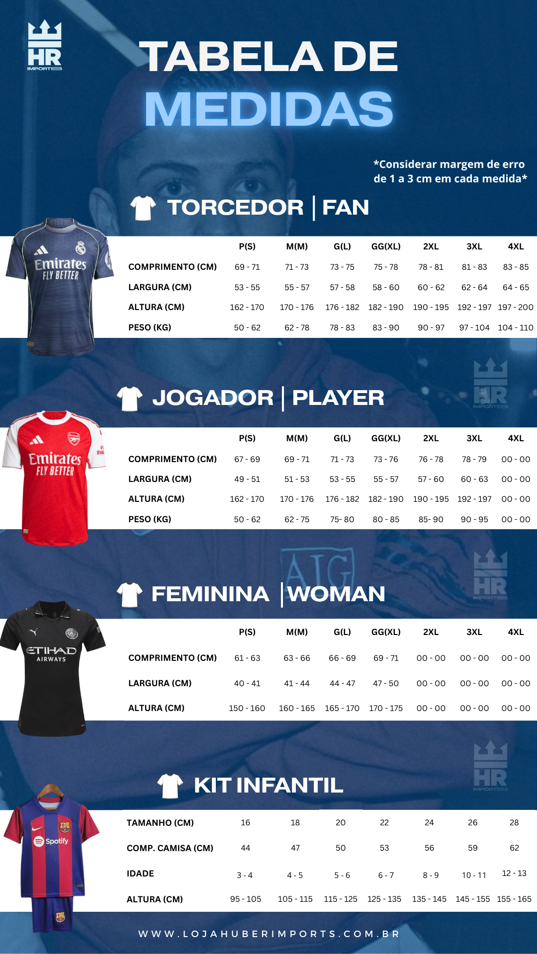 Nossos produtos são réplicas tailandesas de altíssima qualidade, confeccionados com o mesmo tecido, bordados, costuras e etiquetas das peças originais. A semelhança é tão grande que a diferença se torna praticamente imperceptível.